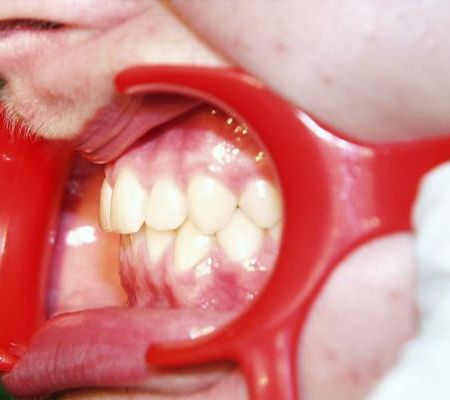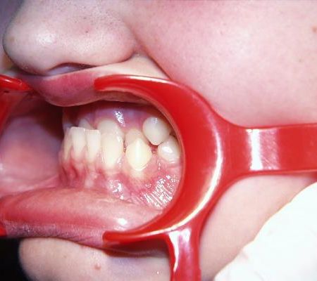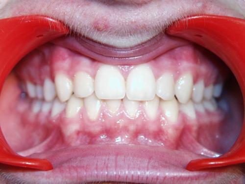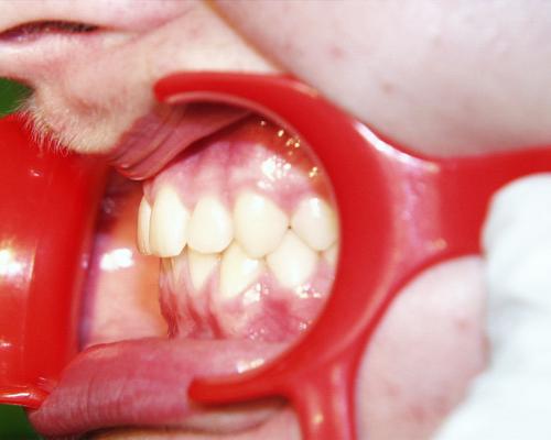 Fallbeispiel 2 zeigt die Überstellung eines umgekehrten Schneidezahnüberbisses mittels einer festsitzenden Zahnspange. Diese Vorgehensweise ist insbesondere dann aussichtsreich, wenn zu Beginn die oberen Schneidezähne steil, die unteren hingegen etwas vorgekippt und nicht verschachtelt stehen. Befindet sich der Patient noch im Wachstum, sollte der Unterkiefer im Verhältnis zum Oberkiefer nicht zu stark vorwachsen. Die Möglichkeiten, das Unterkieferwachstum mit kieferorthopädischen Mitteln zu bremsen, sind sehr begrenzt.